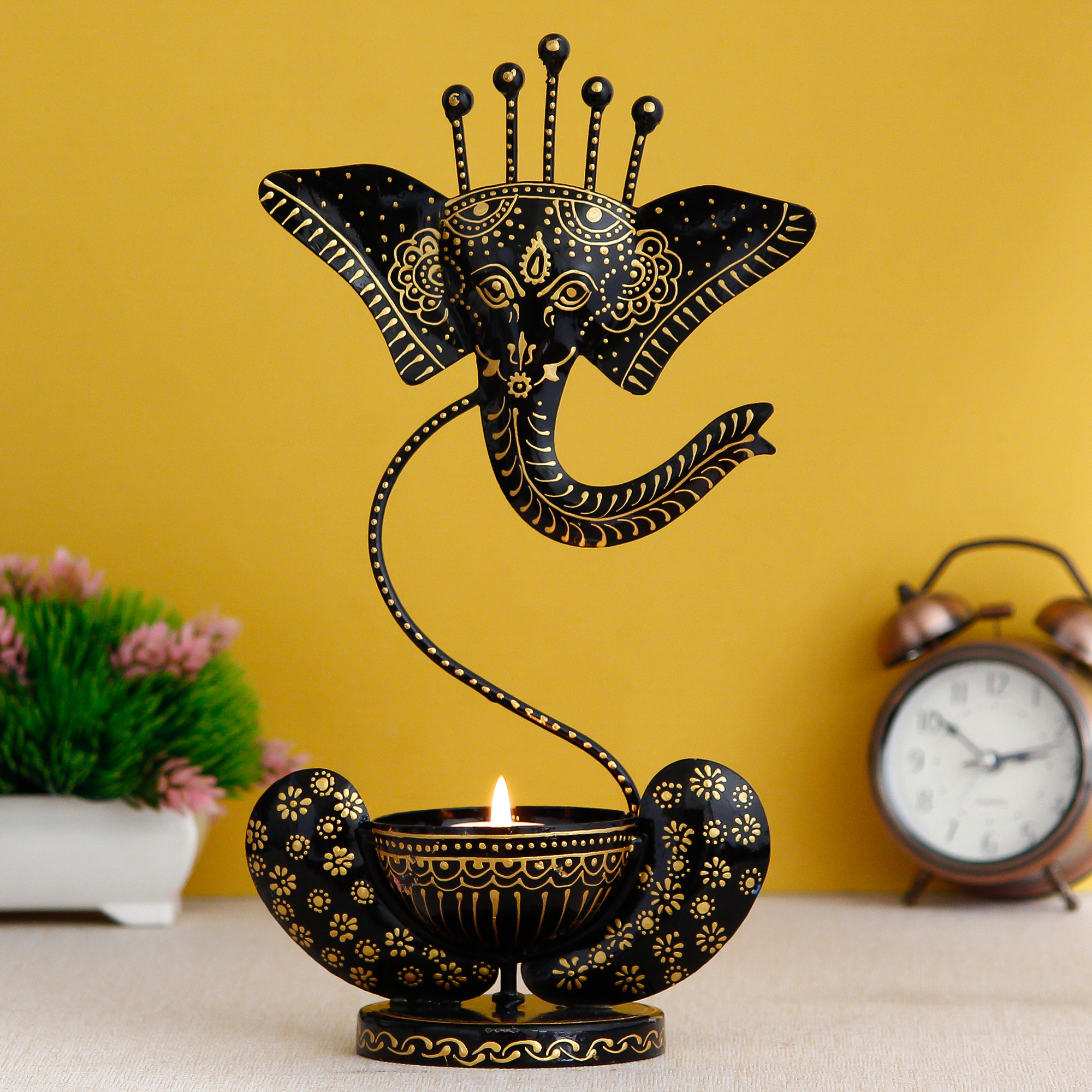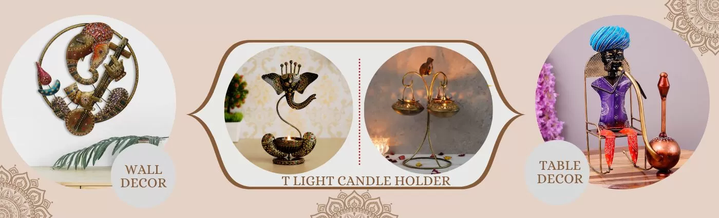 Our candle holder range is all about ambiance and spiritual calm. Products such as the Elephant T-Light Holder, Peacock Tea Light, Ganesh Tea Light Holder, and Trunk Elephant Design Holder bring both artistic form and soft lighting to your spaces.